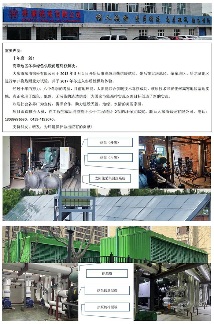 大慶市東油鉆采有限公司的地?zé)岷吞柲苋∨鉀Q方案(2023年6月15日發(fā)布)