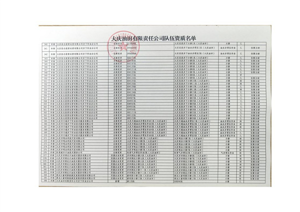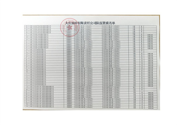 大慶東油15001隊(duì)(大慶油田)資質(zhì)證書(shū)